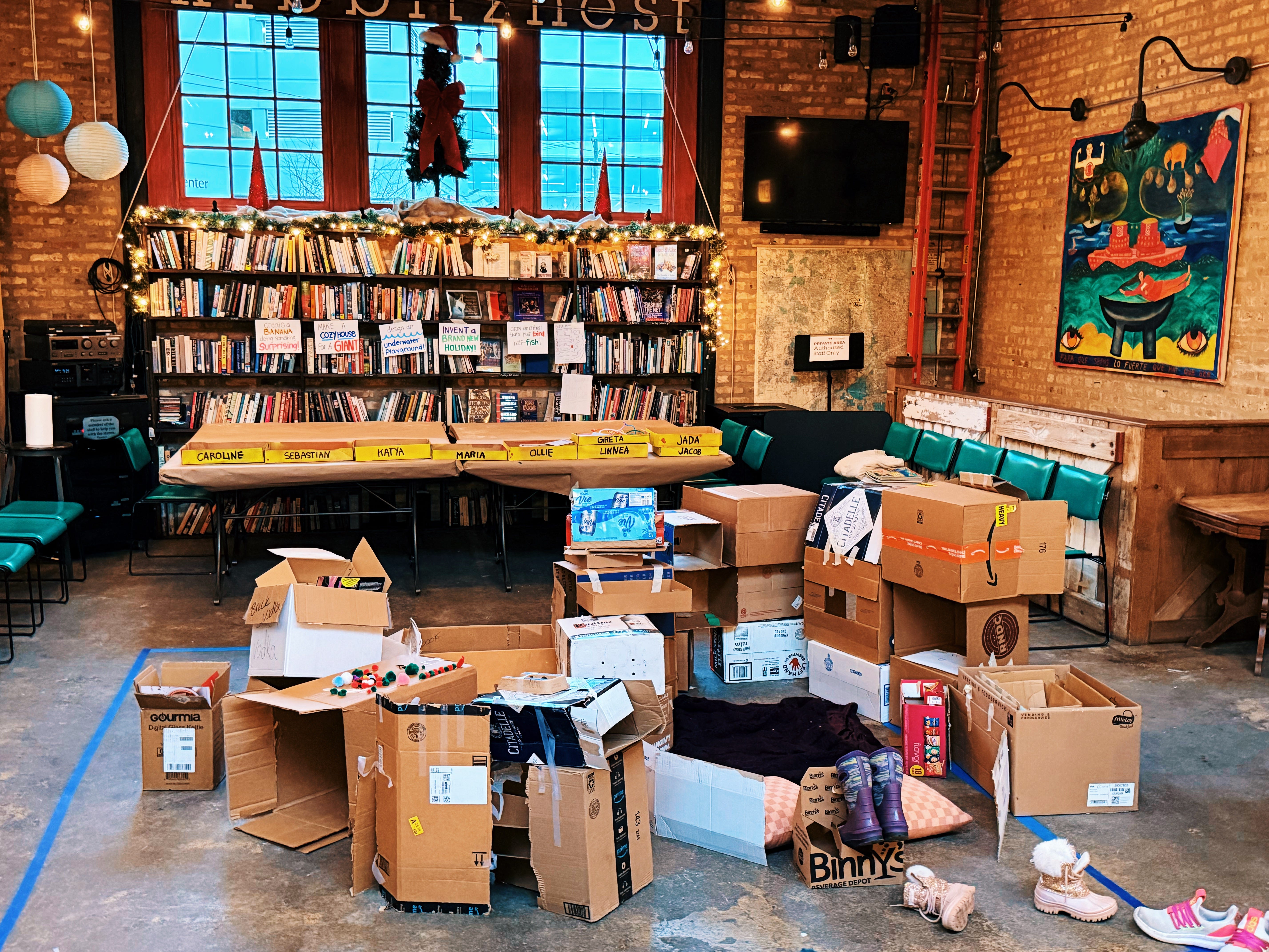 I held three holiday camps: two days during the week of Thanksgiving, two days the week of Christmas, and two days the week of the New Year. Tucker and Rachel were gracious enough to allow me to run these camps at their book bar, Kibbitznest Books, Brews & Blarney, which they become the new owners of in August. The bar is closed Mondays and opens late on Tuesdays, so we had lots of room the stretch out. I hired two assistant counselors and welcomed 15 kids ages 6-10 for each camp. I was able to make a sliding scale for tuition, and around half of the families who participated didn’t have to pay at all. Running a group of kids that large was a new and fun challenge, and I am looking into camp licensure to be able to do more of these in 2026!
